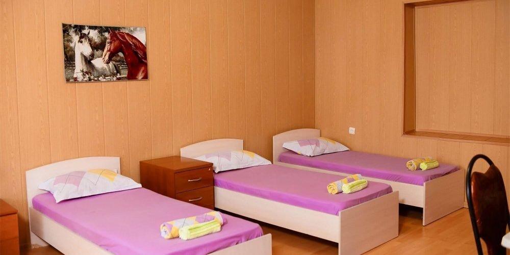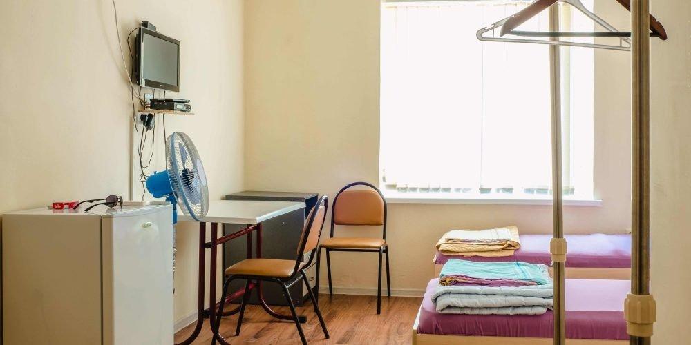 В каждом номере: собственный санузел (душ, туалет), кондиционер, холодильник, телевизор, удобные кровати, в люксах есть шкафы и удобные тумбы.