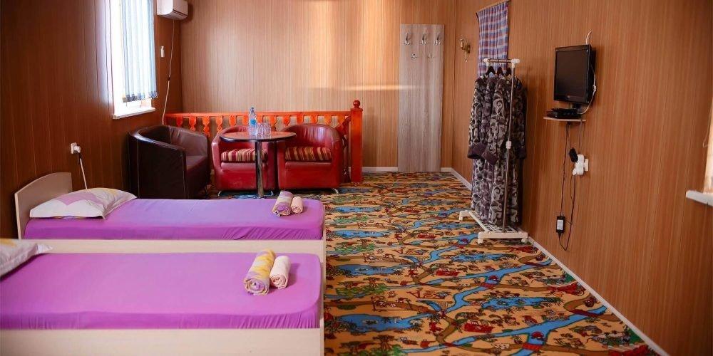 Сервис входящий в стоимость проживания: ежедневная влажная уборка номера, смена постельного белья 1 раз в 5 дней, первая доврачебная помощь (аптечка), хранение багажа у администратора , детская игровая площадка, батут и качели, теннисный стол, вечерняя дискотека, летний кинотеатр, автостоянка, маленькие переносные зонтики на пляж , круглосуточная охрана территории, трансфер – микроавтобус для встреч и проводов гостей, Wi-Fi на территории, комплект постельного белья и полотенца для лица. Банные полотенца предоставляются только в люкс номерах. Пляжные полотенца рекомендуем брать свои.