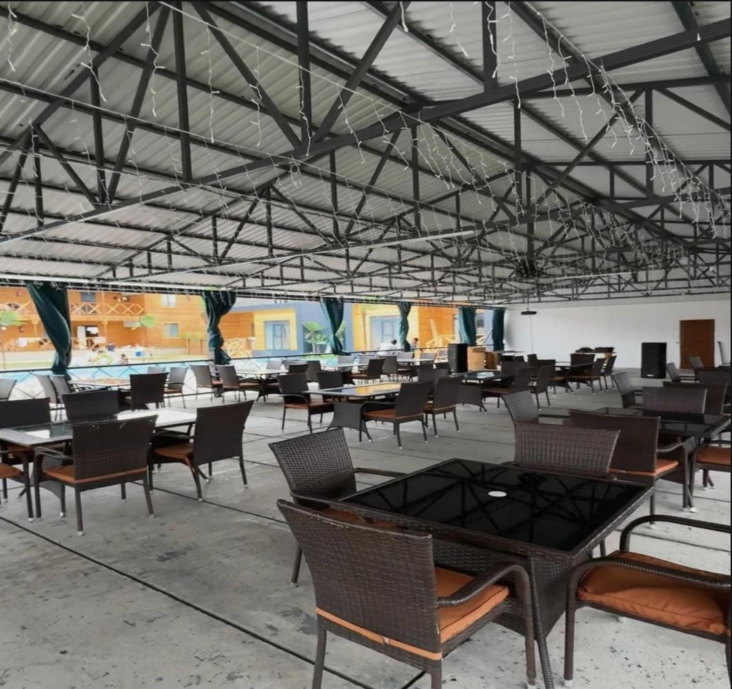 На территории базы отдыха работают: столовая с линией раздачи, кафе, кухня: европейская, восточная, грузинская, меню на заказ, суши, шашлыки, коктал, бар