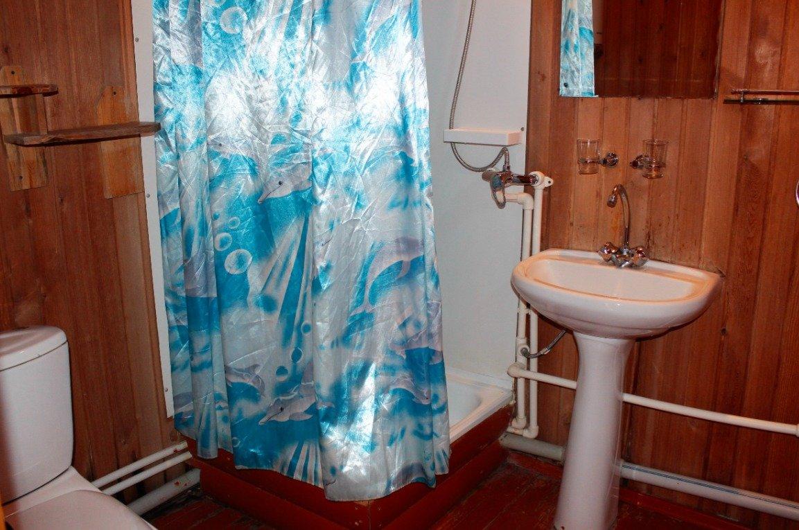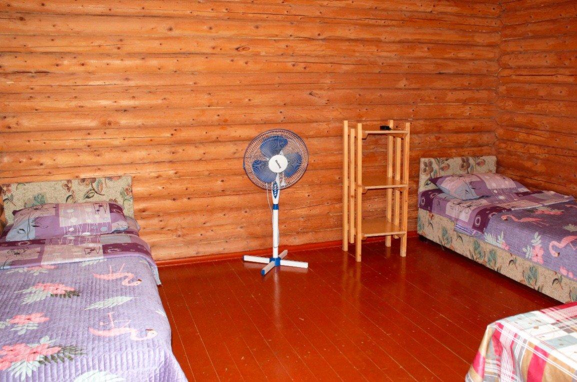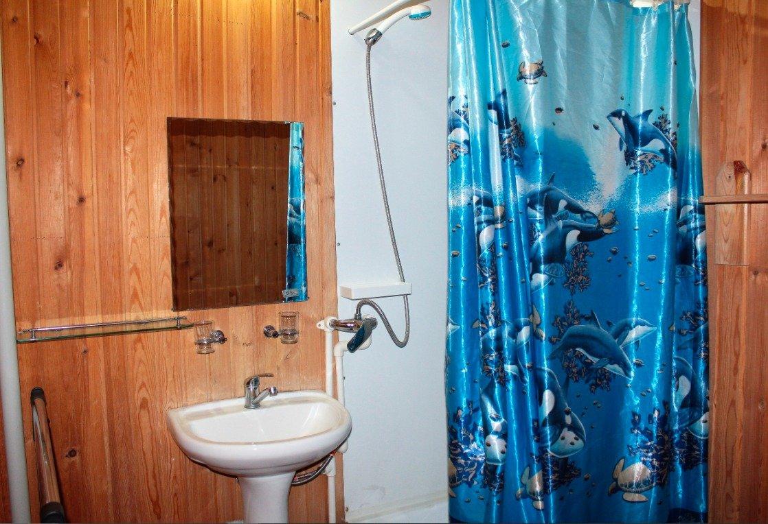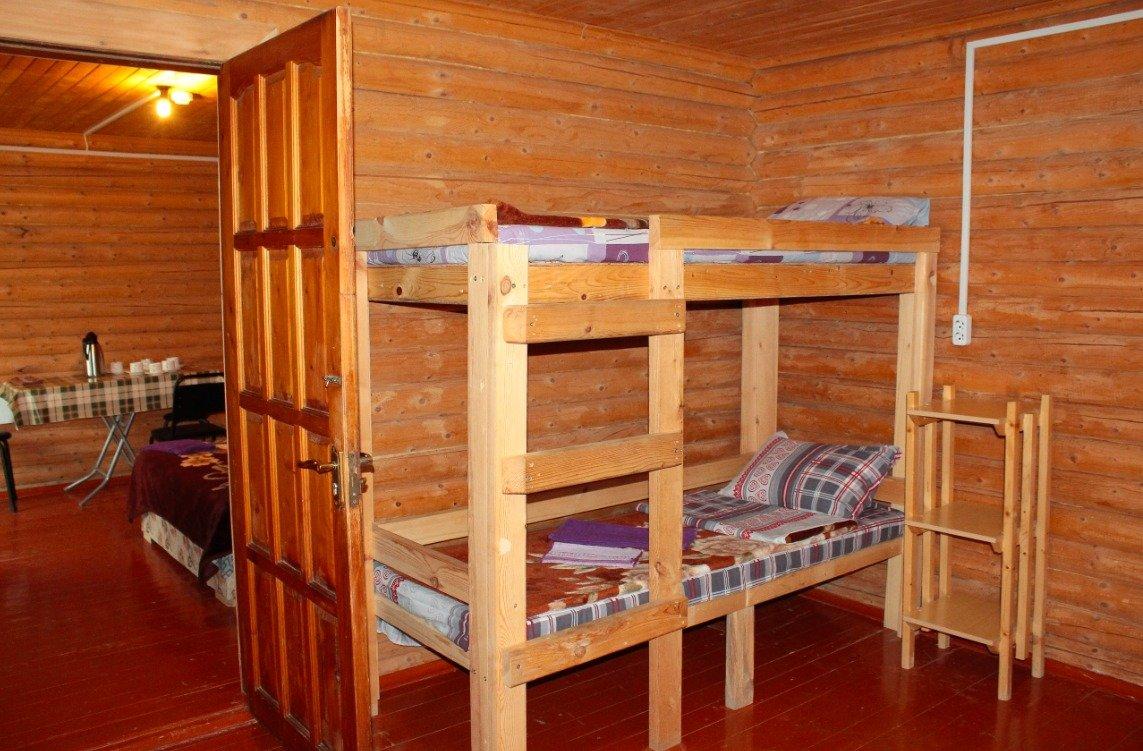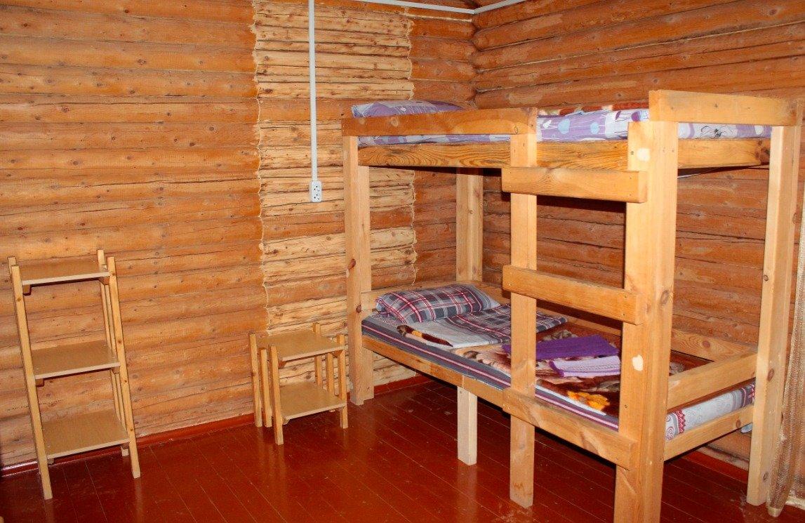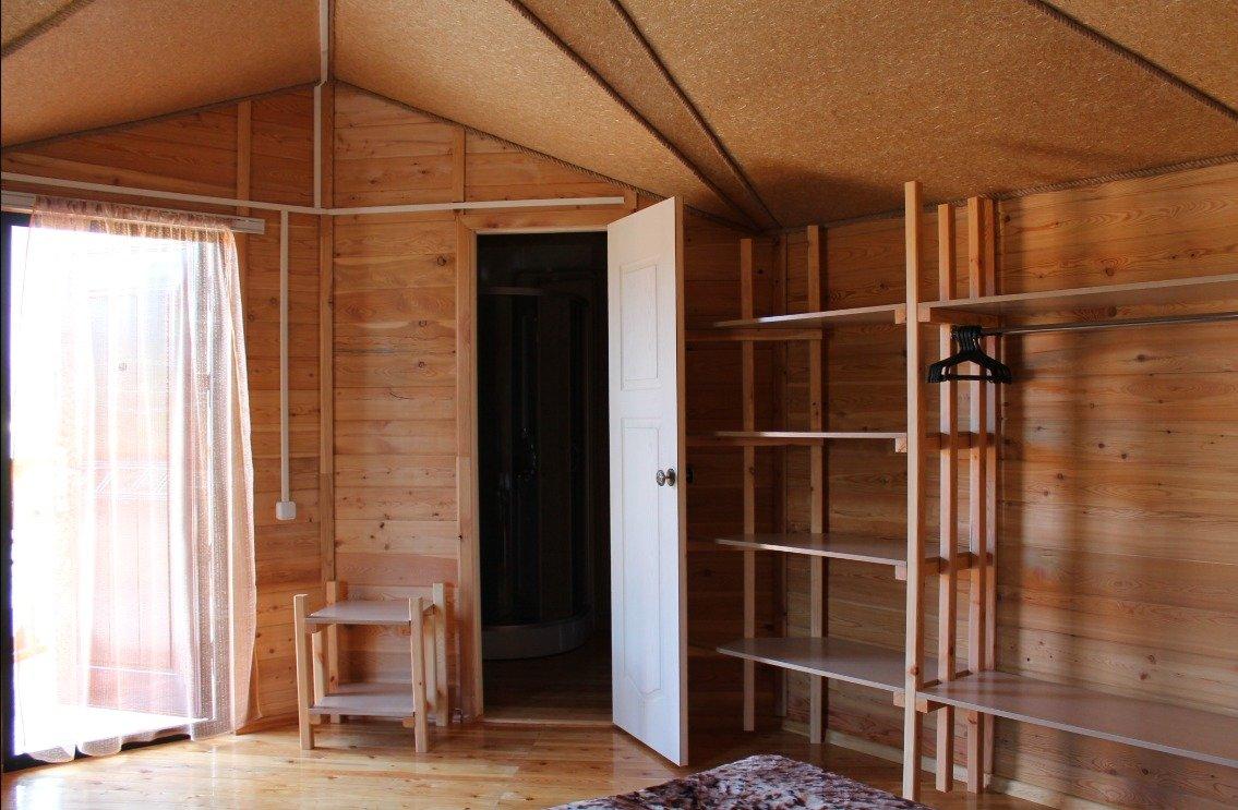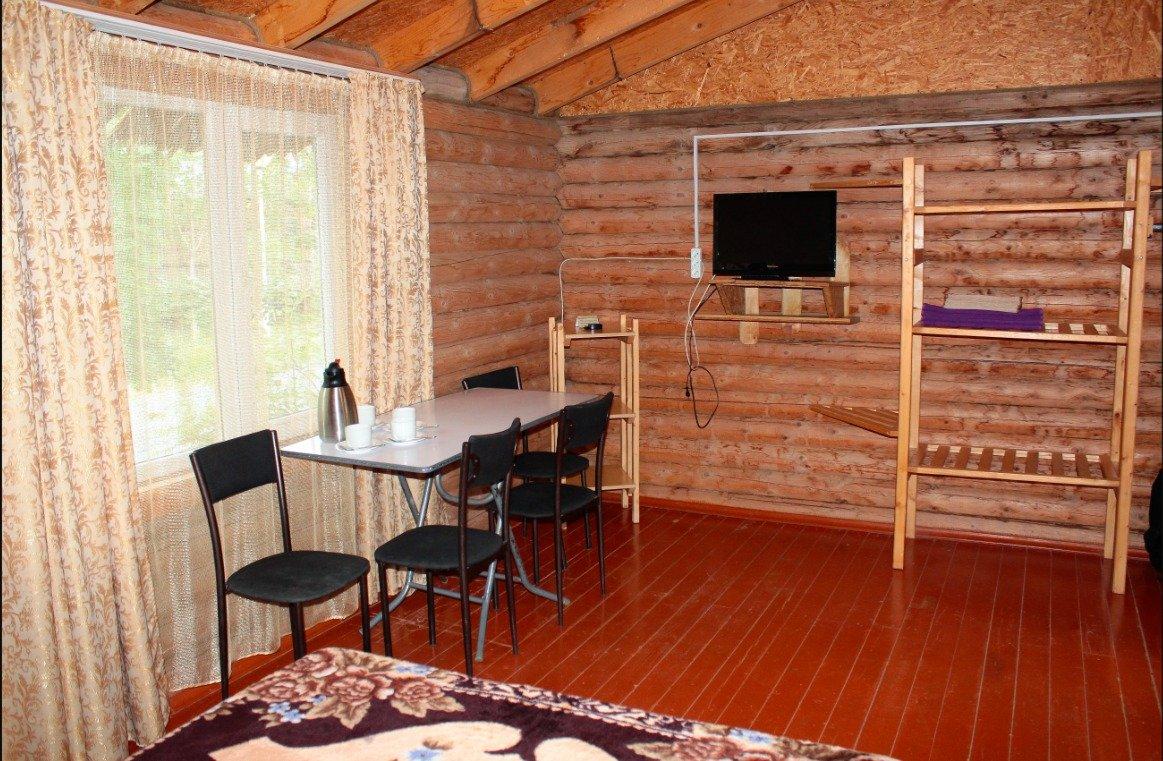 Однокомнатный 4-х местный номер в общем корпусе-срубе, без террасы. В номере двуспальная и двухъярусная кровати, холодильник, кондиционер, ТВ, тумба, стол, стулья, набор чайной посуды, термос, шкаф-стеллаж, собственный санузел с душем с отдельным входом на небольшой веранде.