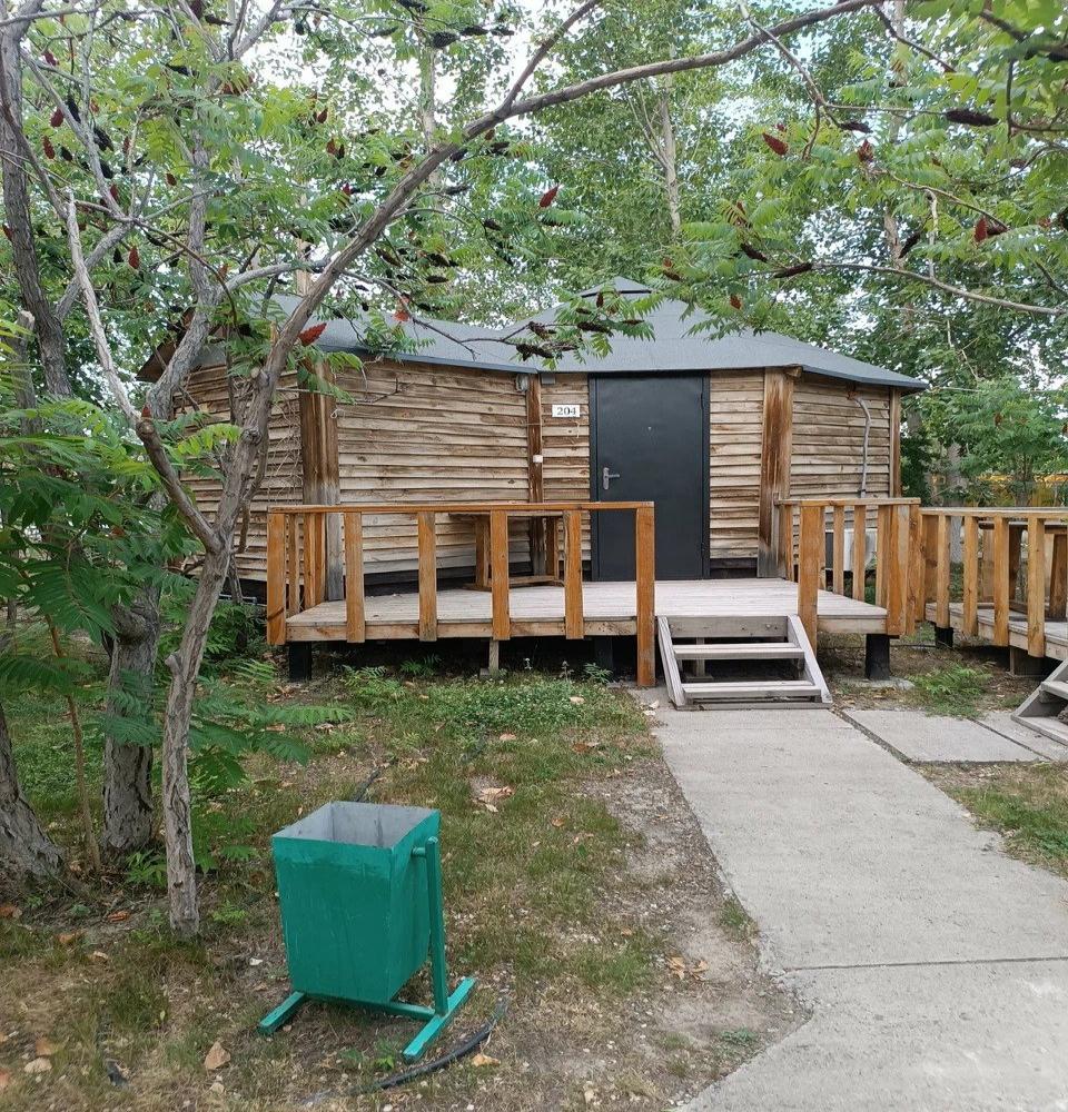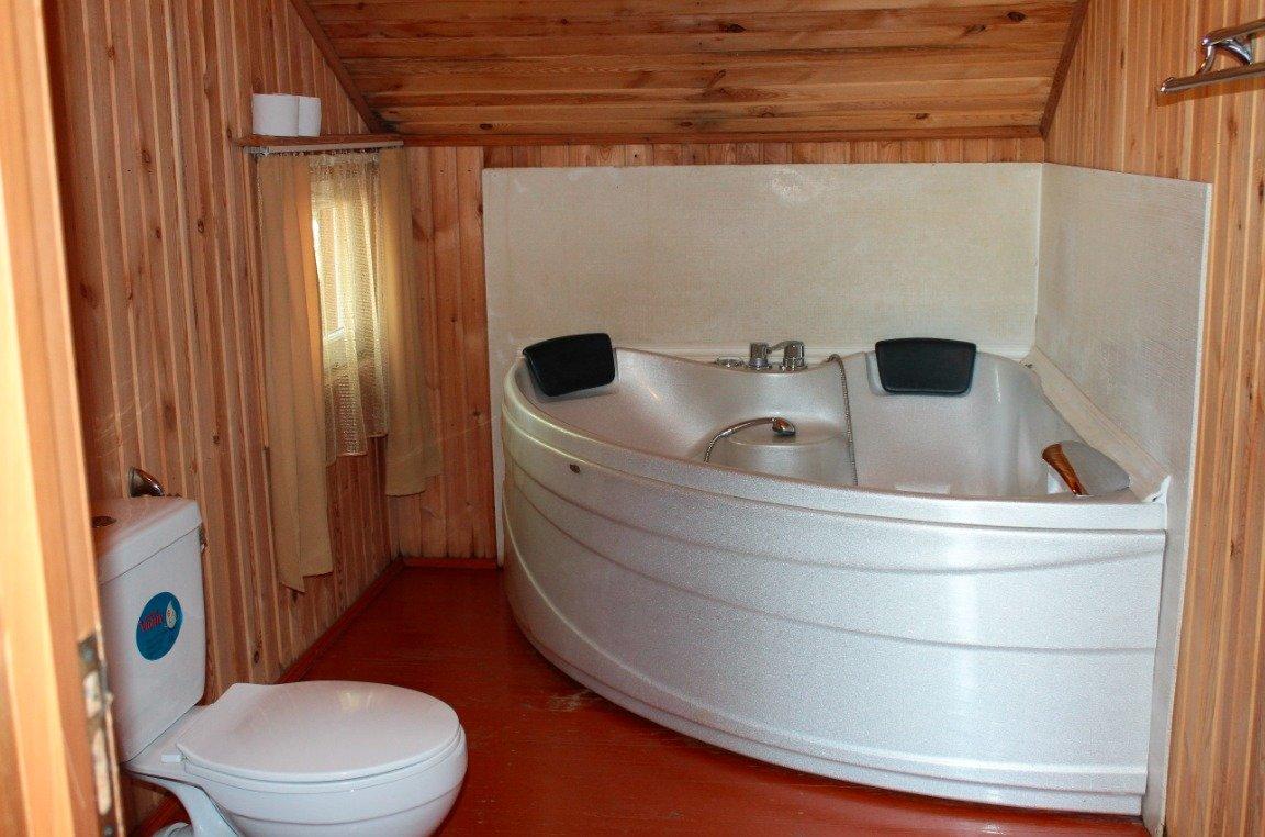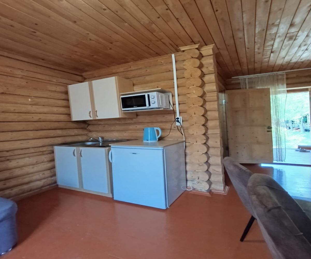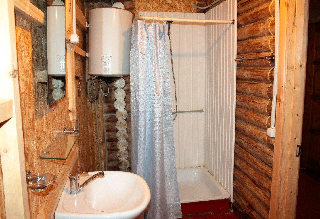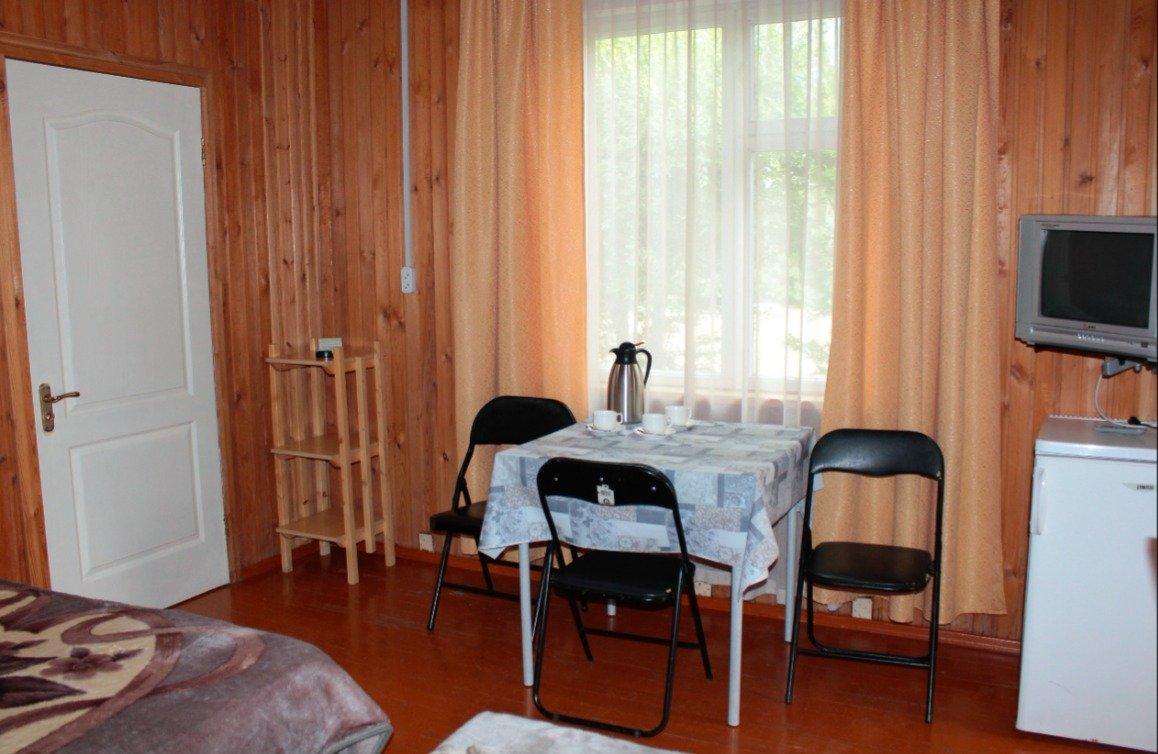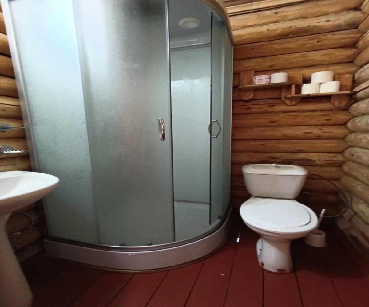 Однокомнатный 4-х местный номер в общем корпусе-срубе, без террасы. В номере двуспальная и двухъярусная кровати, холодильник, кондиционер, ТВ, тумба, стол, стулья, набор чайной посуды, термос, шкаф-стеллаж, собственный санузел с душем с отдельным входом на небольшой веранде.