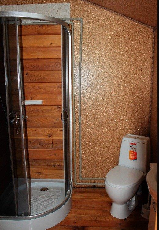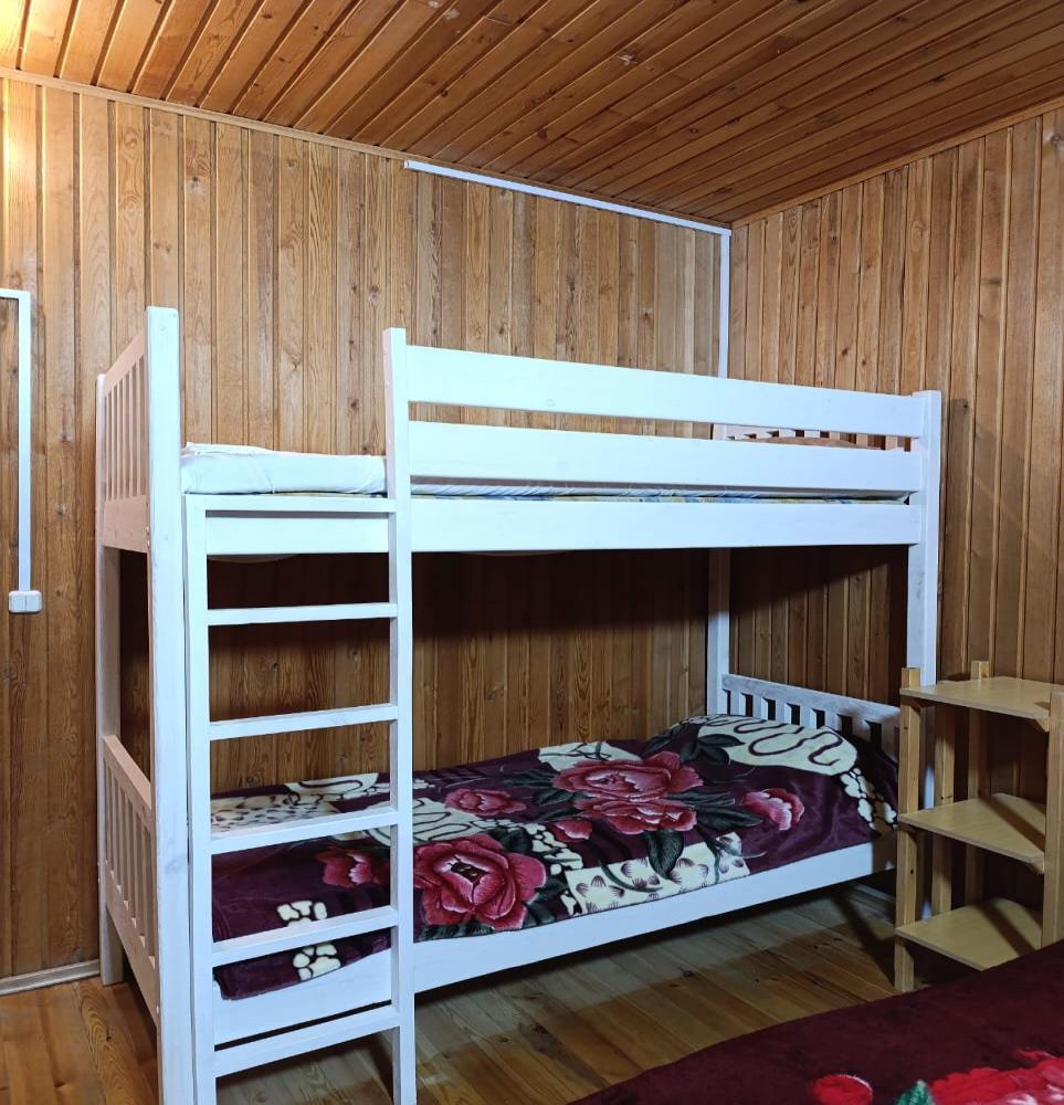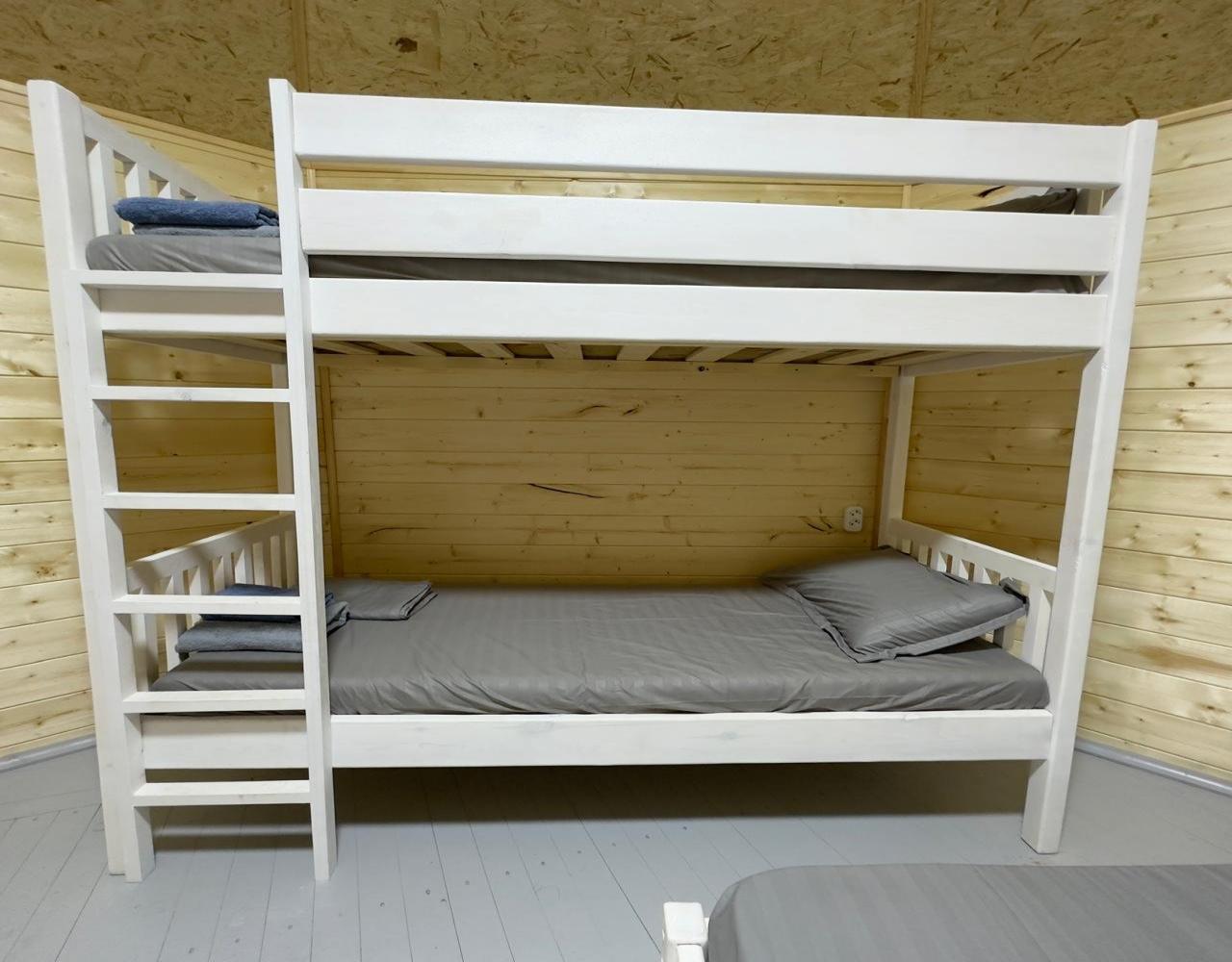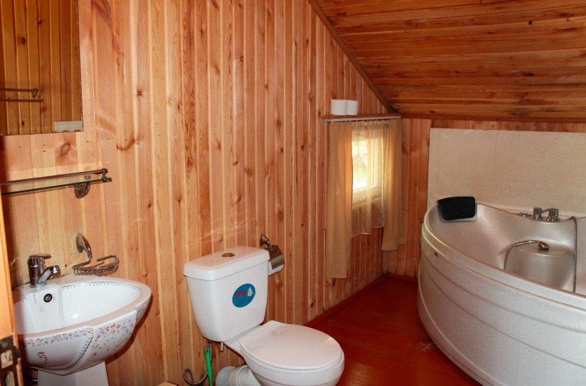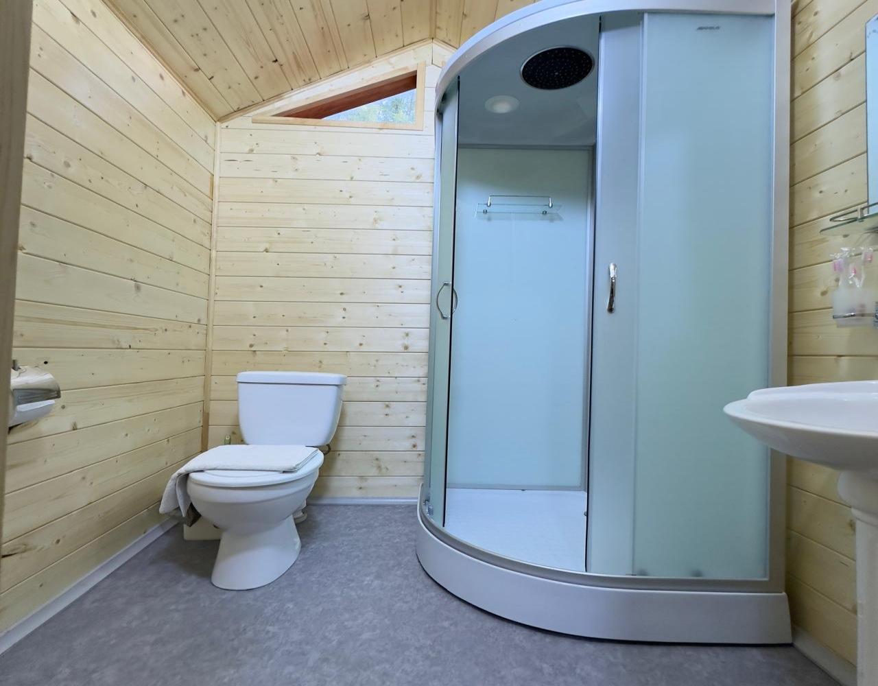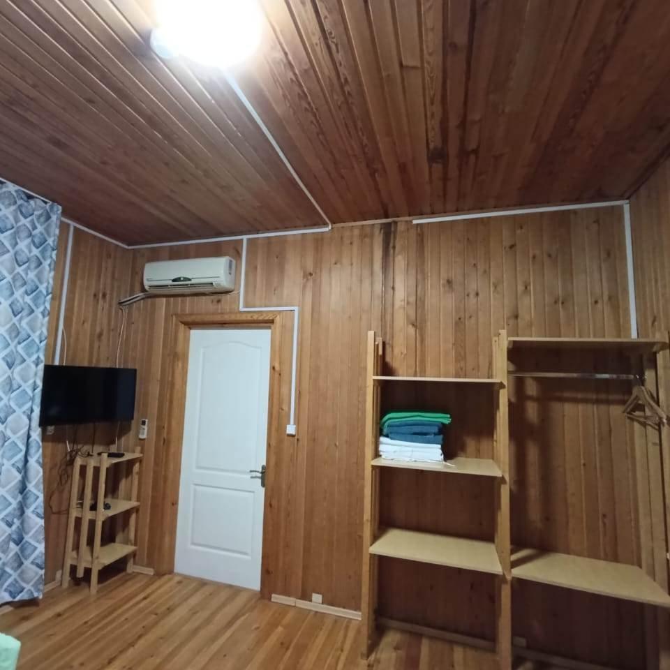 Однокомнатный 4-х местный номер в общем корпусе-срубе, без террасы. В номере двуспальная и двухъярусная кровати, холодильник, кондиционер, ТВ, тумба, стол, стулья, набор чайной посуды, термос, шкаф-стеллаж, собственный санузел с душем с отдельным входом на небольшой веранде.