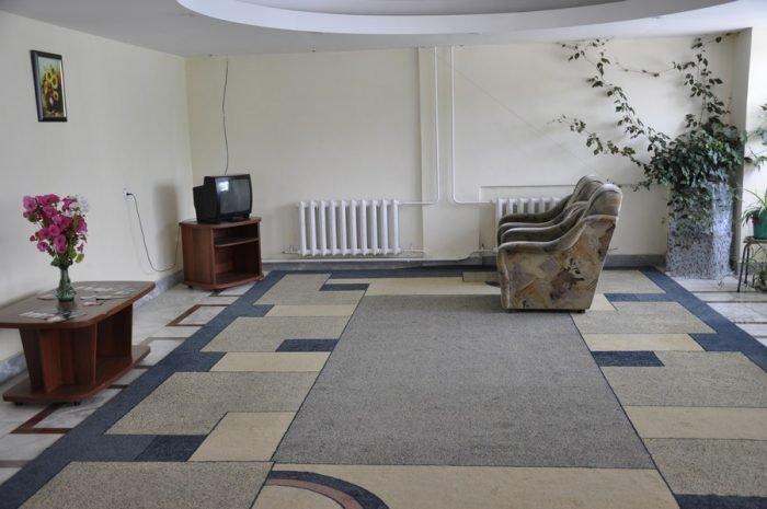 Зал: большая комната, мебельный гарнитур, стол, стулья, диван, кресла, ковер. Спальная: двухспальная кровать, прикроватные тумбочки, шкаф. Все номера с балконом, выход на балкон с обеих комнат, туалет и ванная с умывальником отдельно, горячая и холодная вода круглосуточно, вешалка, ТВ, холодильник, стены под яйцо, хорошее освещение, занавеска, балкон выходит на озеро (юг) - есть место для дополнительной кровати.