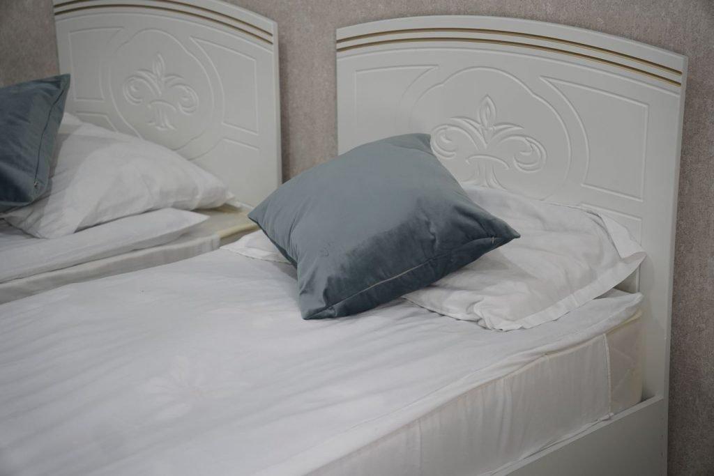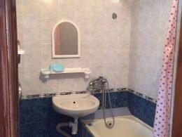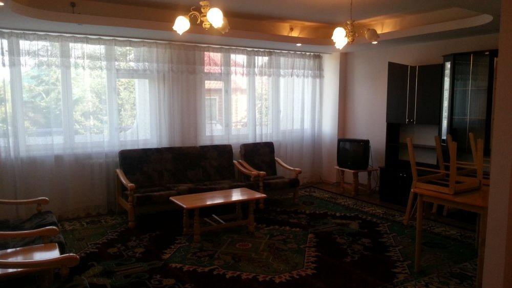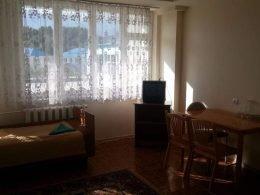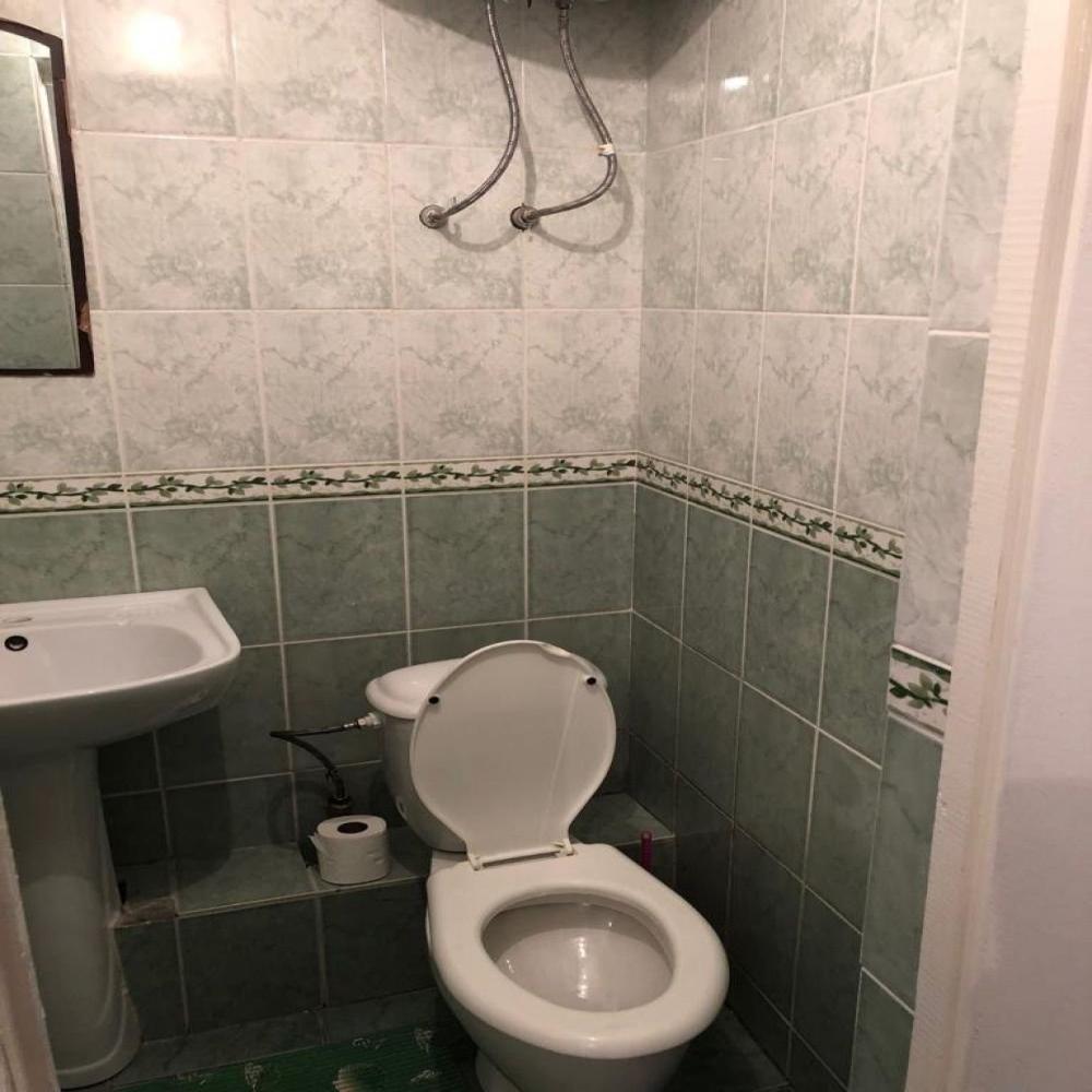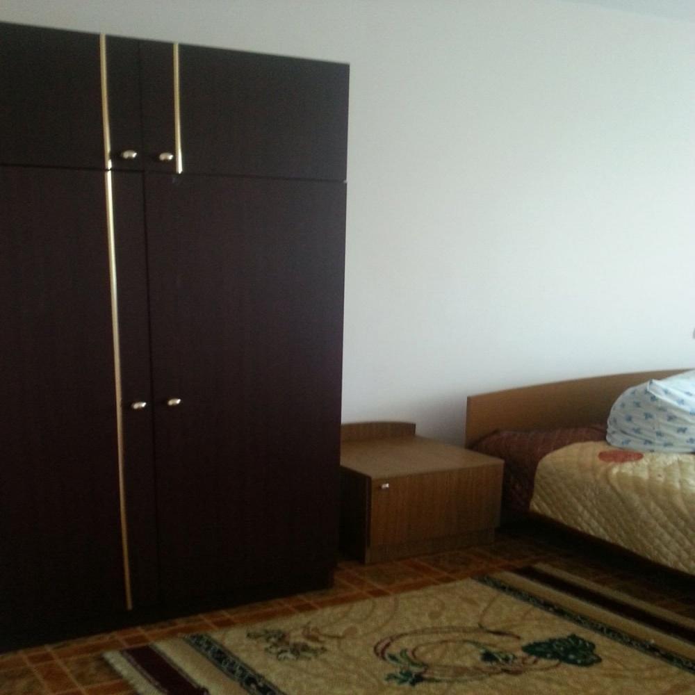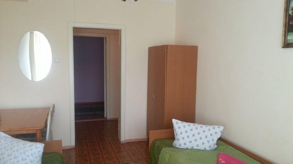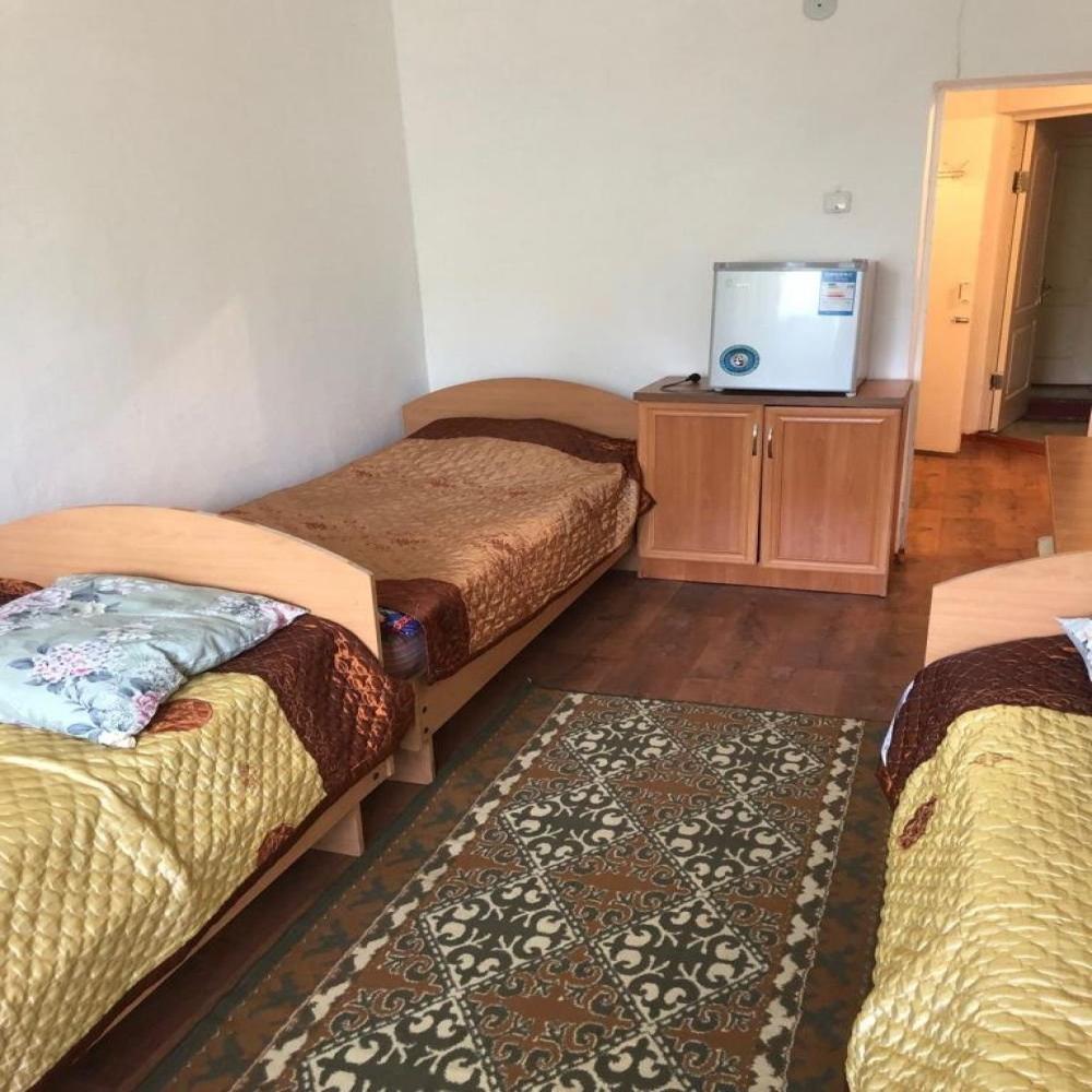 Две комнаты, 3-и кровати односпалки, две в одной комнате, одна в другой, прикроватные тумбочки, все номера с балконом, выход на балкон с обеих комнат, туалет и ванная с умывальником отдельно, горячая и холодная вода круглосуточно, вешалка, ТВ, холодильник, стол, стулья, шкаф, ковер, стены под яйцо, занавеска, балкон выходит и на горы (север) и на озеро (юг) - есть место для дополнительной кровати.
