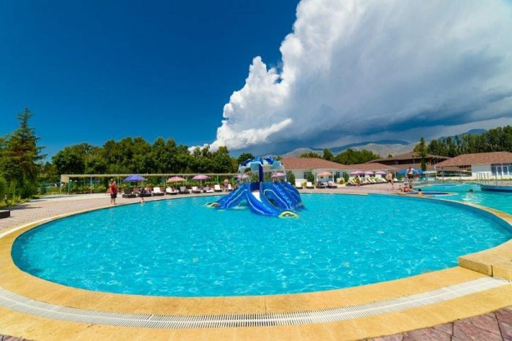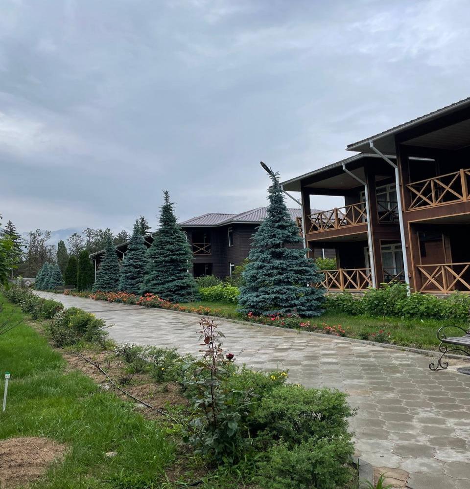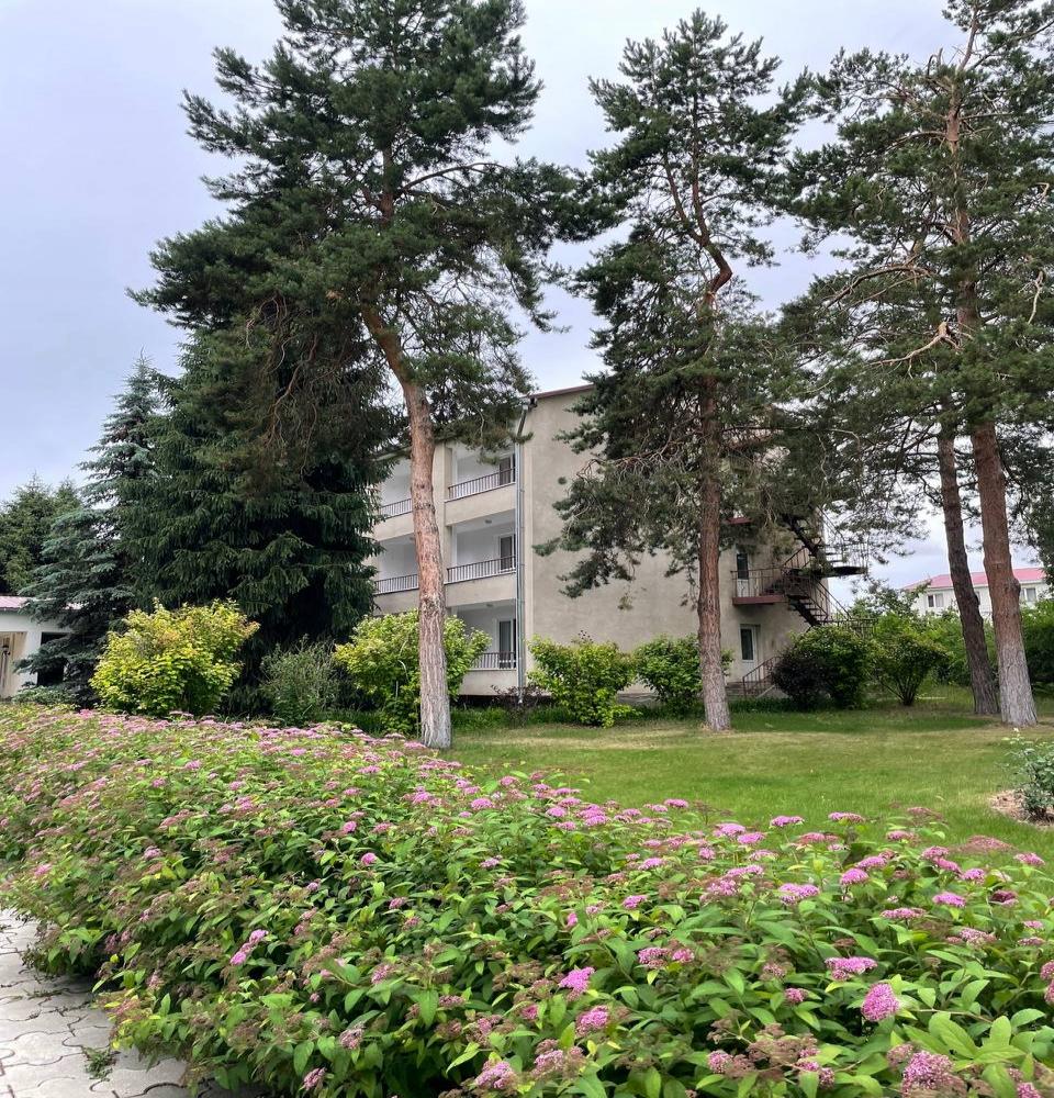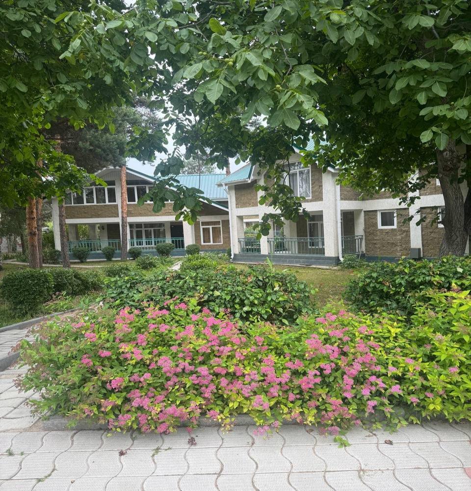расположен на северном берегу озера Иссык-Куль, в курортной зоне Кара-Ой, возле города Чолпон-Ата. На обширной озелененной территории есть все необходимое для спокойного отдыха всей семьей на лоне природы и проведения деловых встреч.