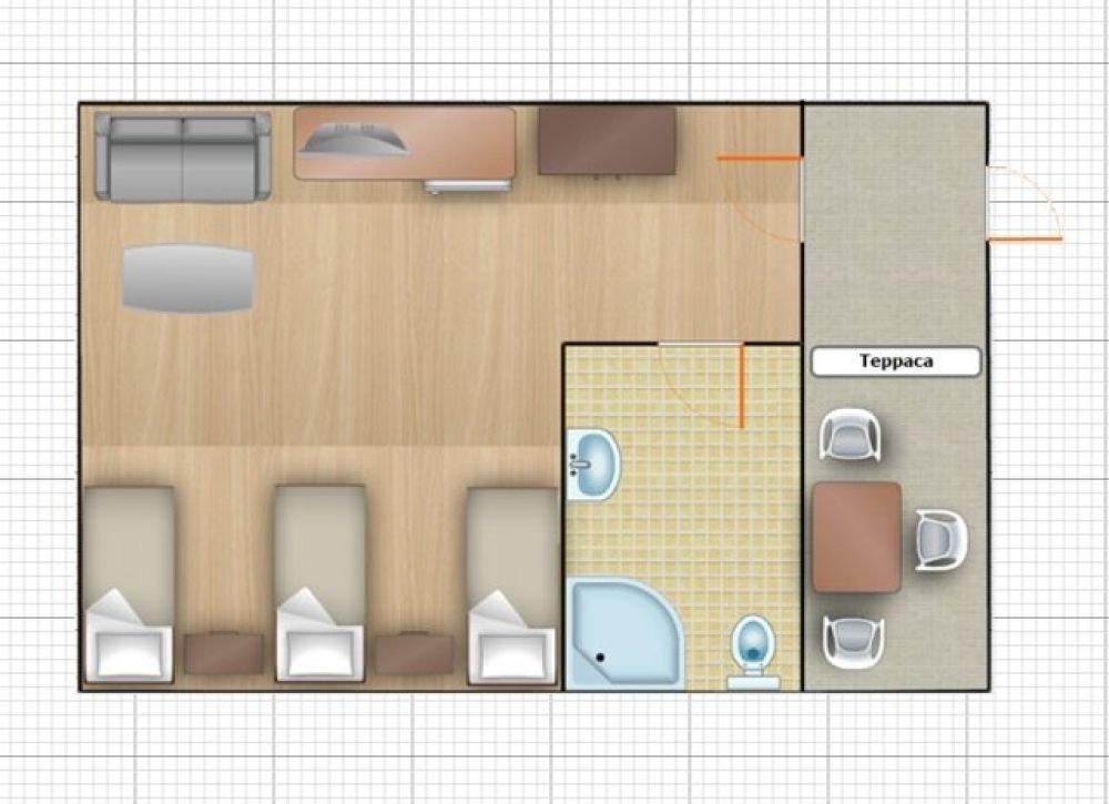 Однокомнатный номер с тремя односпальными кроватями. Номер с террасой или с верандой.