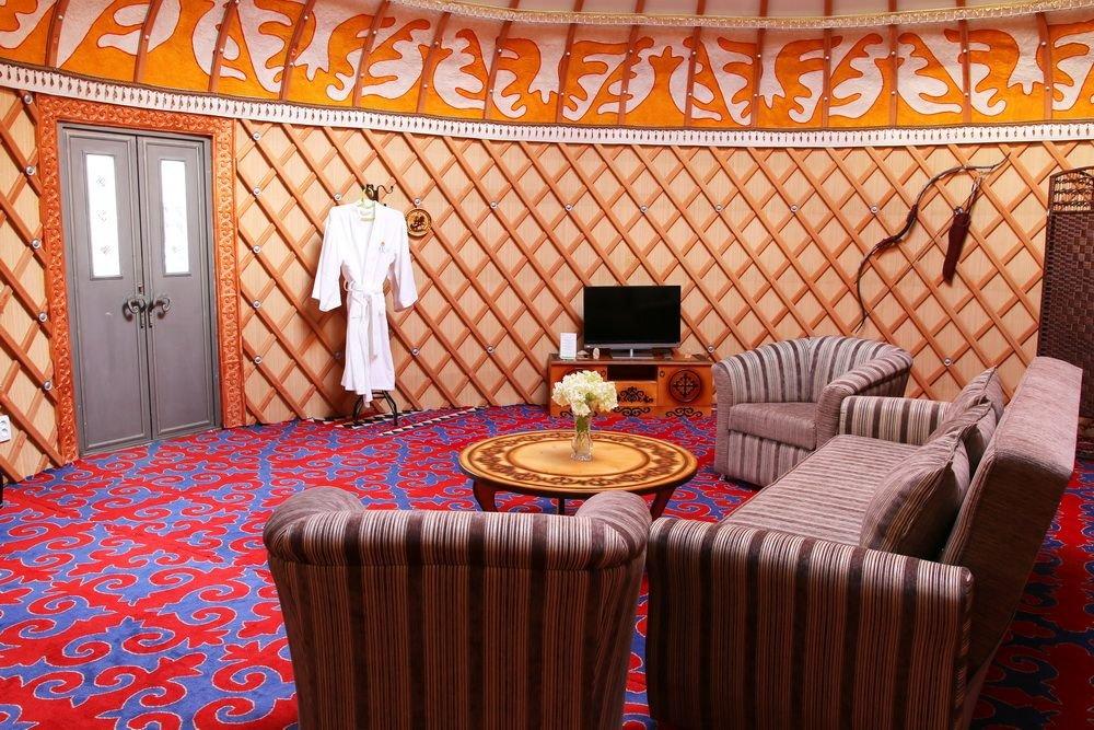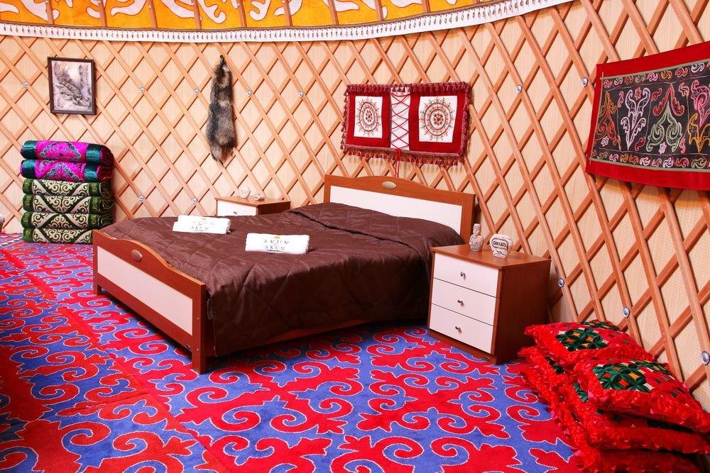 Национальные юрты с двуспальными кроватями расположены в центре территории.