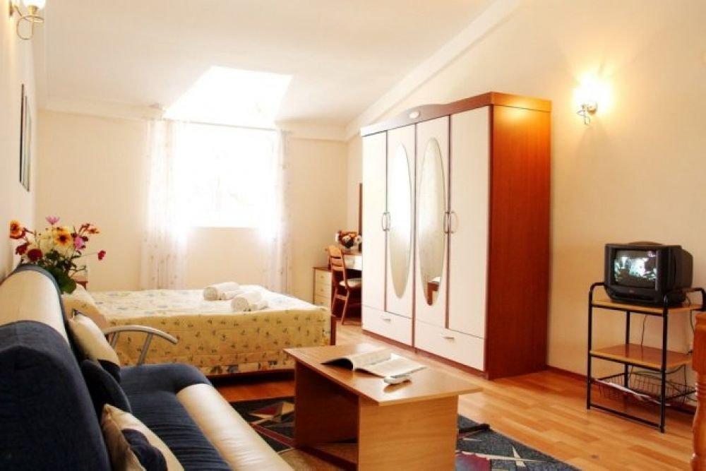 Однокомнатный номер с одной двуспальной кроватью или с двумя раздельными. Номер без балкона, окна выходят на сад.