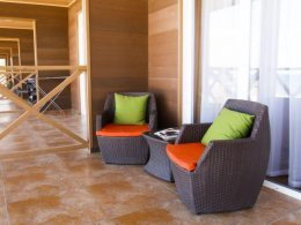 Номера на первом этаже идут с открытыми террасами перед входом, на втором этаже - с верандами.